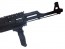 Replika legendarne AK 47 jurišne puške v taktični izvedbi. V nasprotju z originalom ima replika namesto lesenih delov ergonomski pištolski ročaj, najlon preklopno kopito in rail sistem za pritrditev taktičnih dodatkov (laser, luč, red dot....). Priložena preklopna vertikalna ročka pripomore k povečanju stabilnosti in natančnosti.